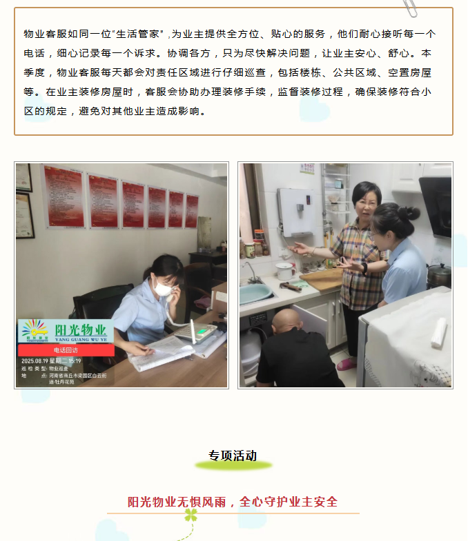 陽光服務|陽光物業(yè)第三季度服務簡報