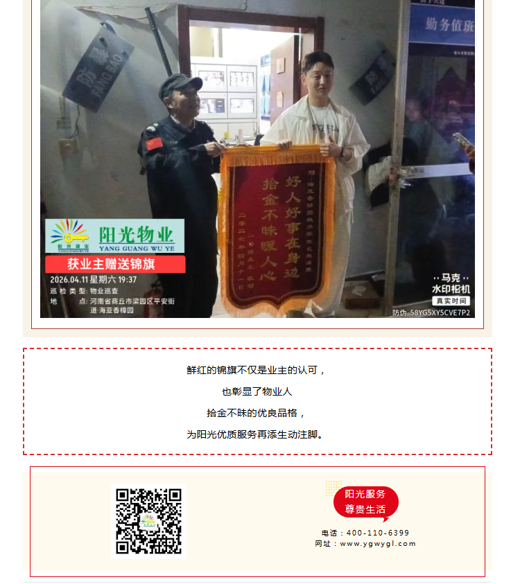 錦旗映初心 | 香樟園物業(yè)服務(wù)中心拾金不昧,守護(hù)業(yè)主“心頭寶”。
